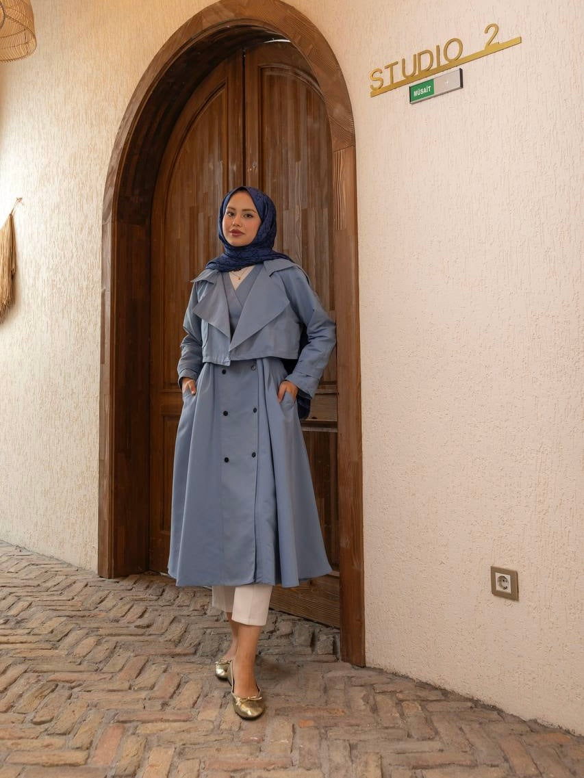 ترانشكوت قطعتين أزرق بارد