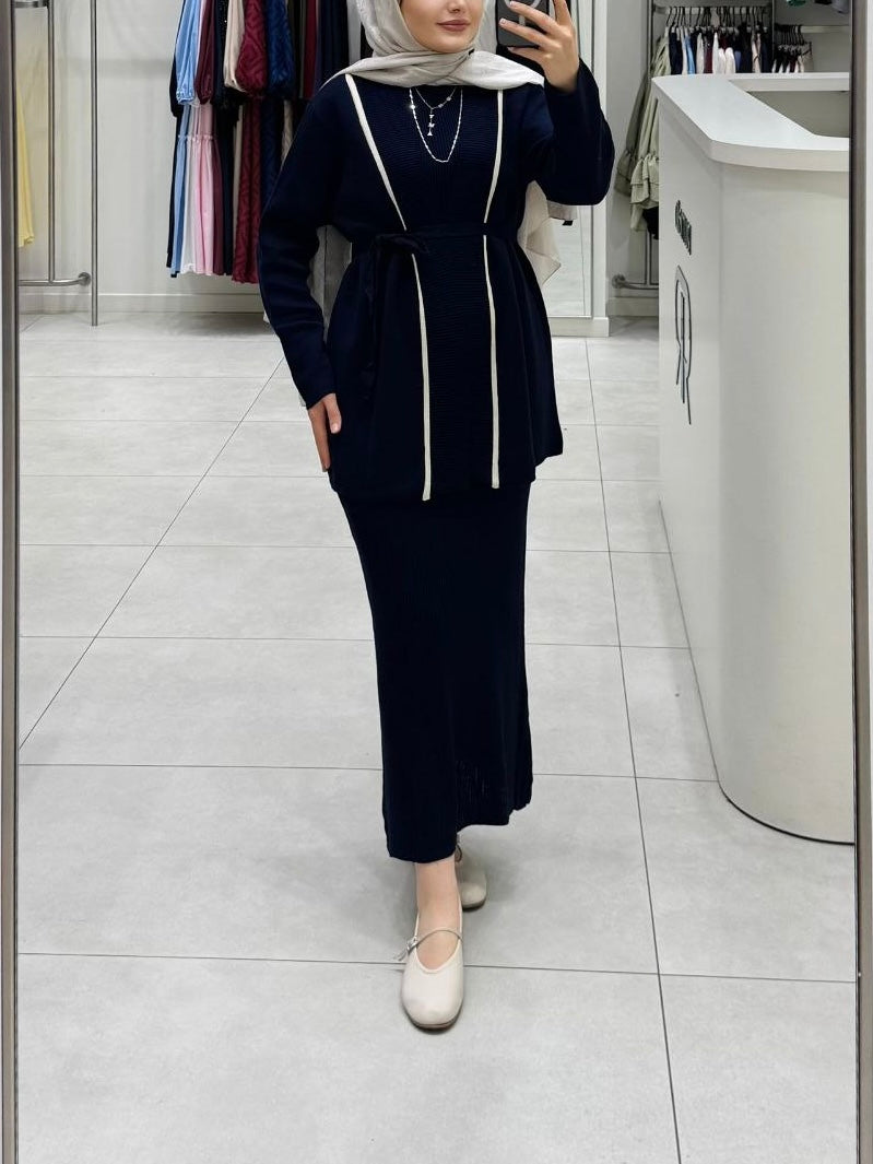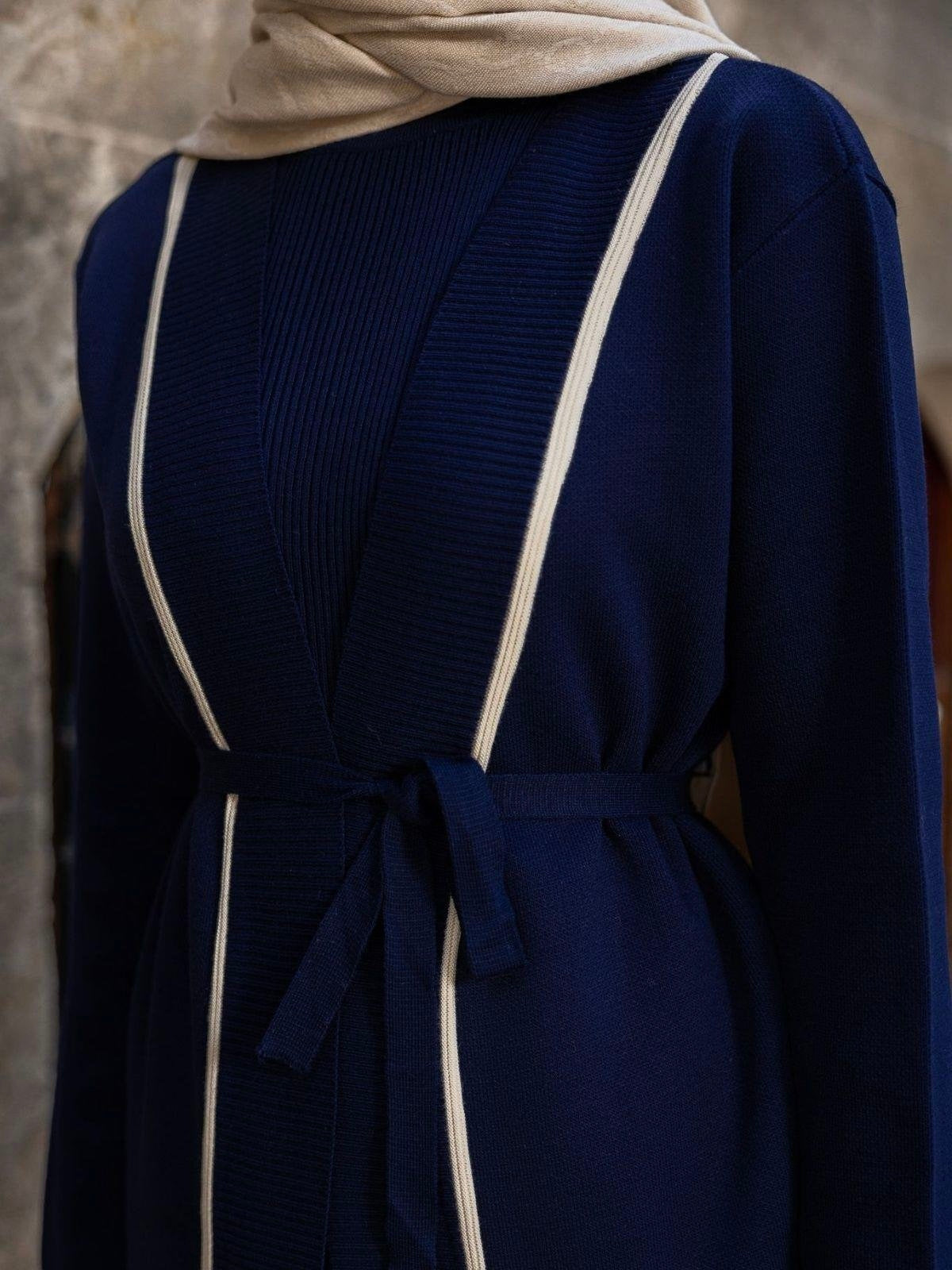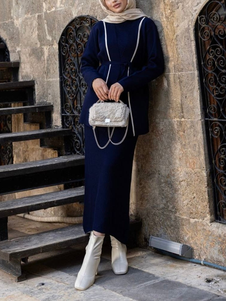 طقم تريكو قطعتين فستان وجكيت (كحلي)